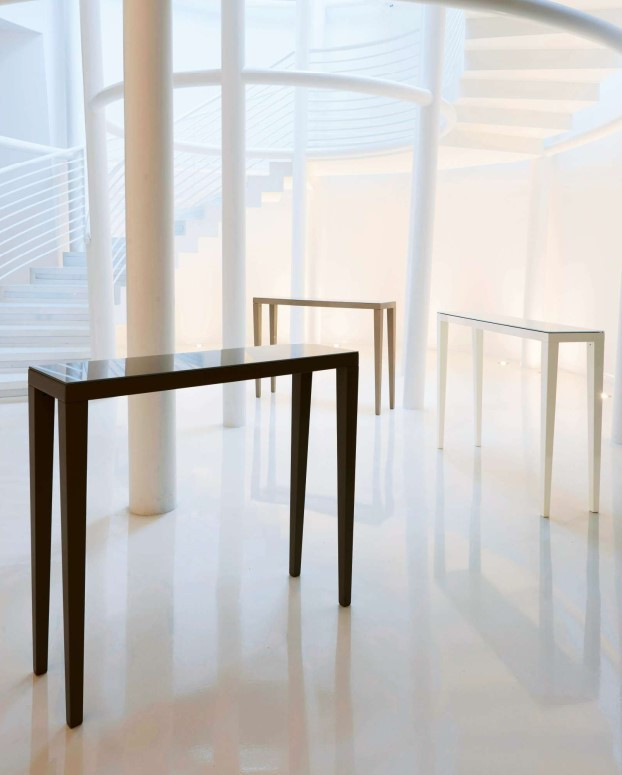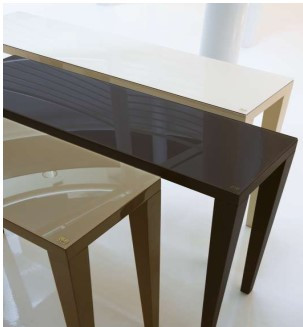 Console with wooden structure matt or glossy laquered. Glass top protection plate laquered in the same colour.