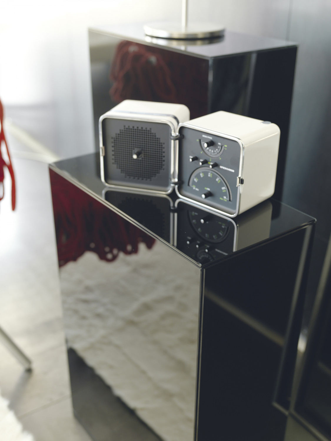 Tavolino, con struttura in specchio o vetro colorato. Disponibile anche in finitura vetro cannellé.