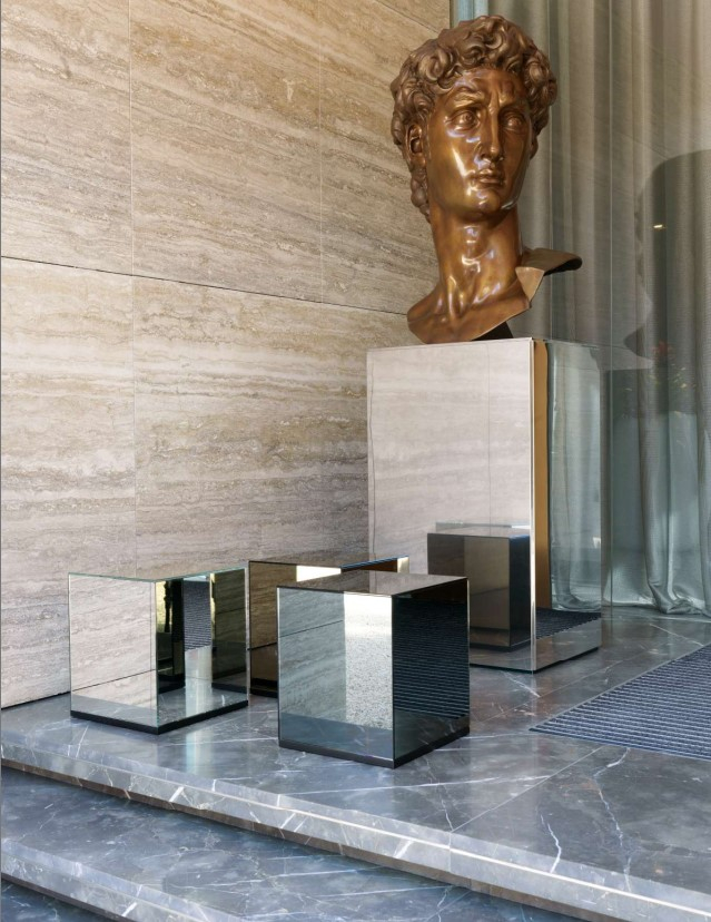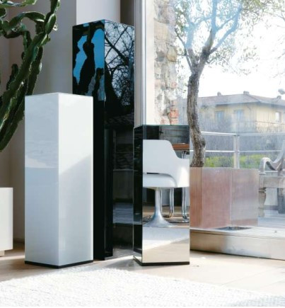 Tavolino con struttura in specchio o vetro colorato. Disponibile anche con anta.
