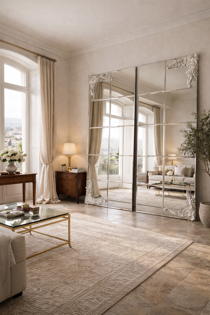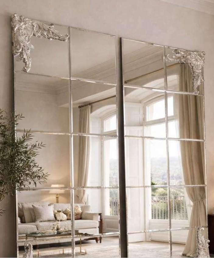 Specchiera free standing rettangolare disponibile con e senza decori. Specchi molati, chiari .
